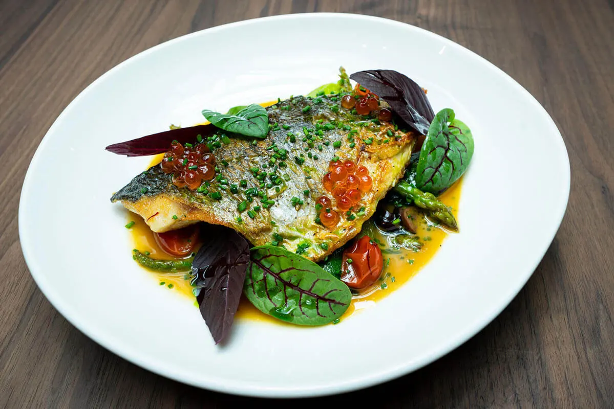 Doradă Doradă+ sparanghel, zucchini, roșii de cherry, măsline, icre de somon și sos de șofran (380 g)90 lei Rezervă o masă online Mai multe preparate POINT: