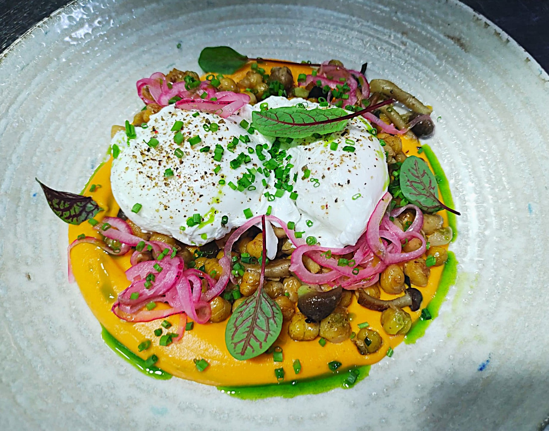 Ouă poșate Ouă poșate+ năut, ciuperci Shimeji, cremă de cartof dulce, ceapă roșie murată, chives (330 g)44 lei Rezervă o masă online Mai multe preparate POINT: