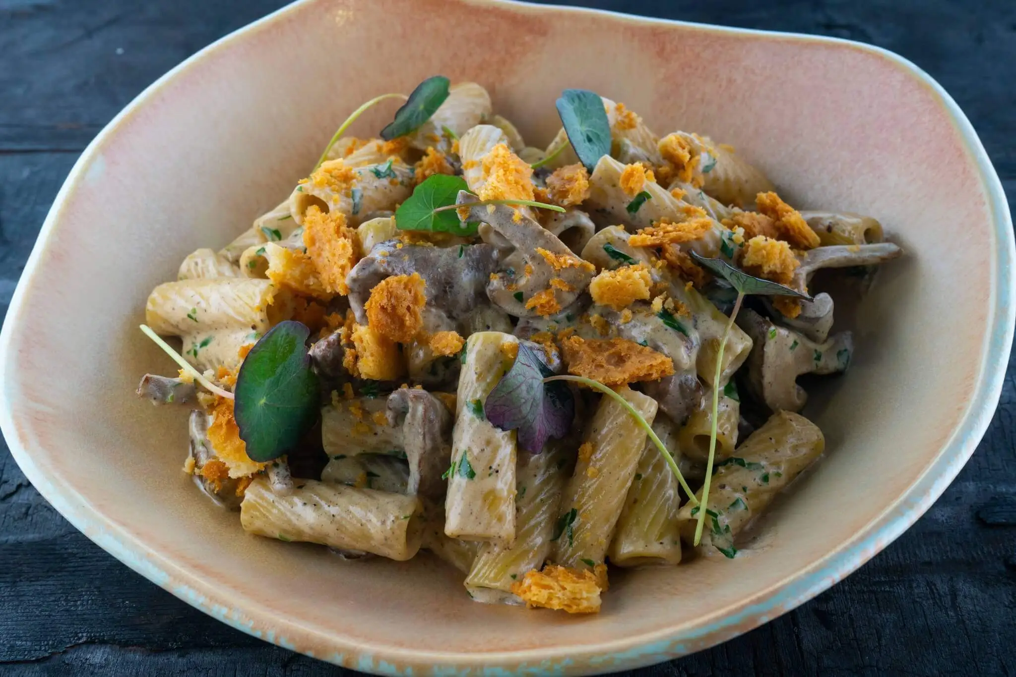 Tortiglioni cu vită Tortiglioni cu vită+ ciuperci shiitake, sos alb cu trufe, crumble de parmezan, pătrunjel (450 g) /variantă fără gluten60 lei Rezervă o masă online Mai multe preparate POINT:
